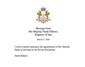 Message from Her Majesty Farah Pahlavi, Shahbanou of Iran