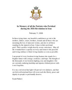 It is my conviction that light will prevail over darkness, and that our beloved homeland Iran will soon reach the liberty, peace and dignity its people so profoundly deserve.