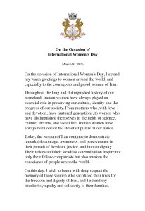 On this day, I wish to honor with deep respect the memory of those women who sacrificed their lives for the freedom and dignity of Iran, and I extend my heartfelt sympathy and solidarity to their families. Their memory will forever remain alive in the hearts of the Iranian people and will continue to inspire future generations.